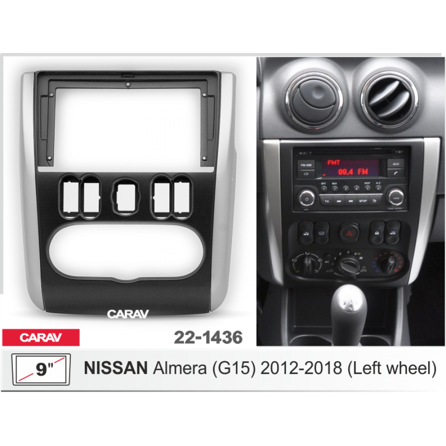 Переходная рамка для установки автомагнитолы 9" в автомобили Nissan Almera (2012-2018) руль слева